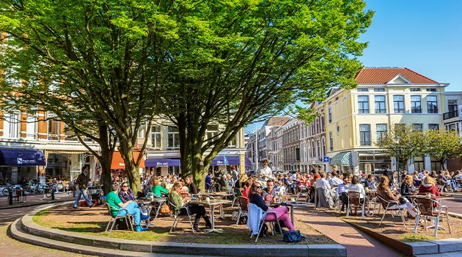 ▪ Loop vervolgens iets terug en ga de Bazarstraat in, aan het einde van de straat kan je terecht bij ROOM, Anna Paulownaplein 13 & 16, voor lunch en diner, maar ook voor een klein hapje of drankje. De gerechten zijn altijd vers en seizoensgebonden.