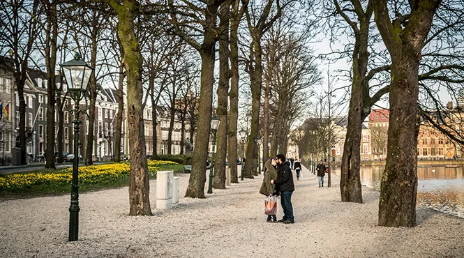 Sluit de dag af met een avondwandeling bij het Lange Voorhout. Een van de mooiste lanen van Den Haag, vooral betoverend met verlichte bomen en historische panden.